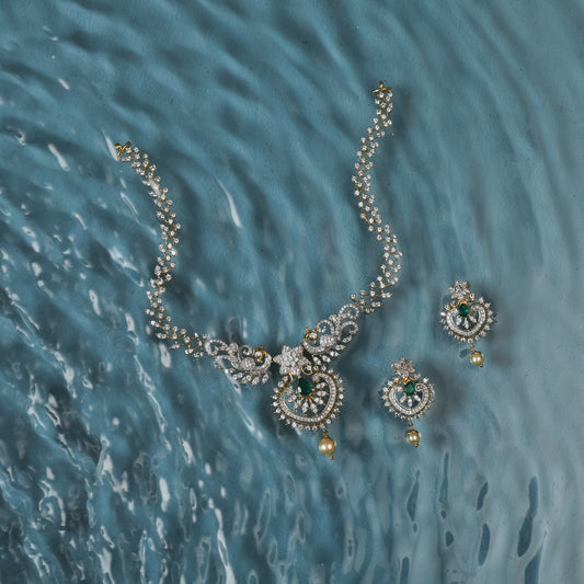 Akhila Moissanite Silver Necklace Set