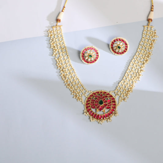 Regular price Rs. 49,029Regular priceUnit price / perSale price Rs. 49,029$500-$750CocktailEOSS 25FloralGoldHasliJadauKempuNecklacesViharaWeddingWhite Red Green -
