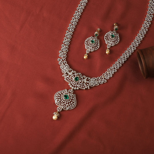 Aarvi CZ Silver Necklace Set