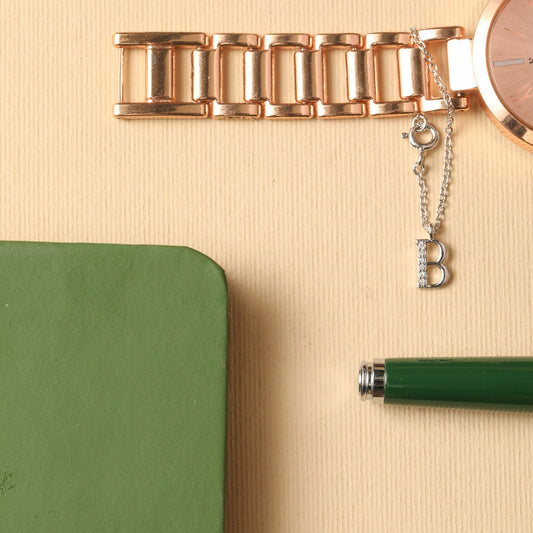 Alphabet CZ White Gold Plated Silver Watch Charm