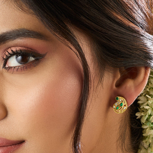 Abhina Gold Plated Silver Jadau Earrings