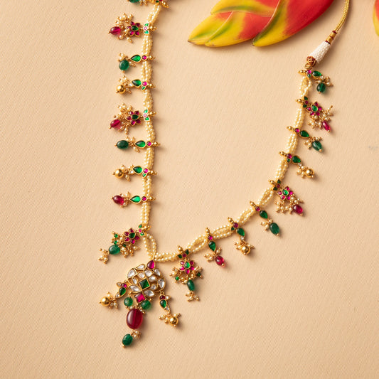 Regular price Rs. 42,839Regular priceUnit price / perSale price Rs. 42,839AntiqueAntique Yellow GoldEOSS 25NecklacesShort NecklaceViharaWhite Red Green -