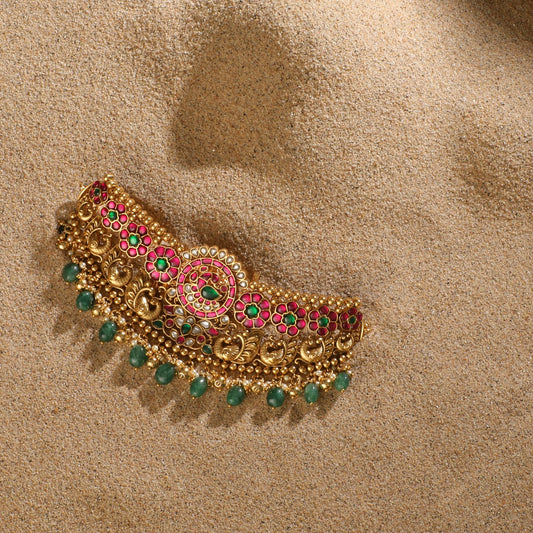 Regular price Rs. 60,489Regular priceUnit price / perSale price Rs. 60,489$250-$500Antique Yellow GoldBridalChokerEOSS 25JadauKempuNecklacesPeacockViharaWhite Red Green -