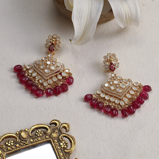 Regular price Rs. 7,259Regular priceUnit price / perSale price Rs. 7,259Antique Yellow GoldBadge2:BestsellerBadge3:Ready To ShipEarringsEOSS 15Rakhi GiftingRedTeejhVihara -