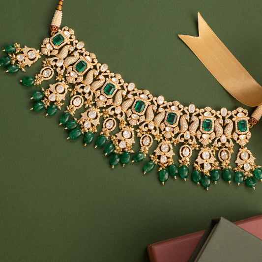 Regular price Rs. 93,299Regular priceUnit price / perSale price Rs. 93,299$500-$750BridalChokerEOSS 25GoldMoissanitePeacockRasikaWhite green -