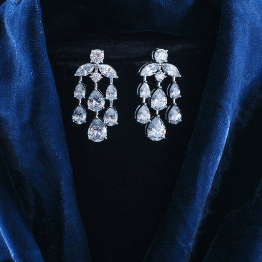 Aurelia CZ Silver Chandelier Earrings