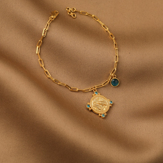 Aquamarine Pisces Zodiac Gold Plated Silver Chain Bracelet