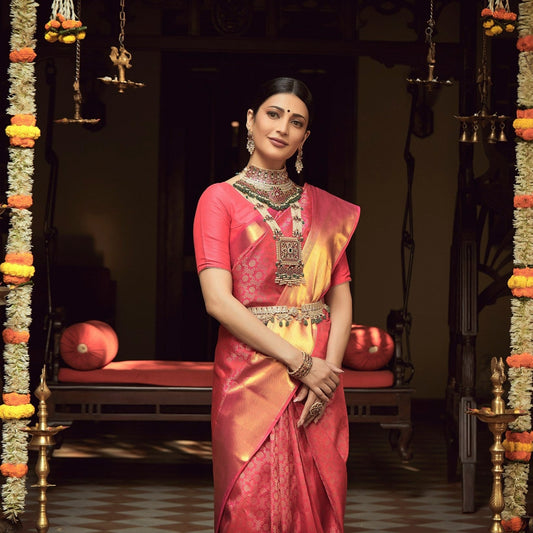 Regular price Rs. 160,749Regular priceUnit price / perSale price Rs. 160,749$1000-$1500BridalEOSS 25FloralKempuLong NecklaceNecklacesViharaWhite Red GreenYellow Gold -