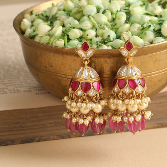 Regular price Rs. 26,489Regular priceUnit price / perSale price Rs. 26,489$250-$500CasualEarringsEOSS 30GoldIryaJadauJhumkaPolki/KundanWhite Red -