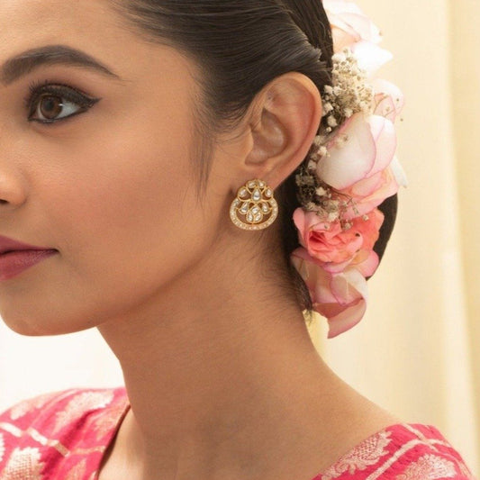 Regular price Rs. 8,759Regular priceUnit price / perSale price Rs. 8,759$50-$100CasualEarringsEOSS 15FloralGoldIryaJadauKempuStudsTeejhViharaWhite -