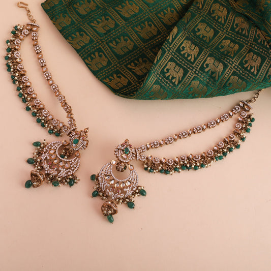 Regular price Rs. 36,879Regular priceUnit price / perSale price Rs. 36,879$100-$250AntiqueAntique Yellow GoldCubic Zirconia (CZ)EOSS 25FloralHasliMandiraNecklacesShort NecklaceVaralaxmiWeddingWhite green -