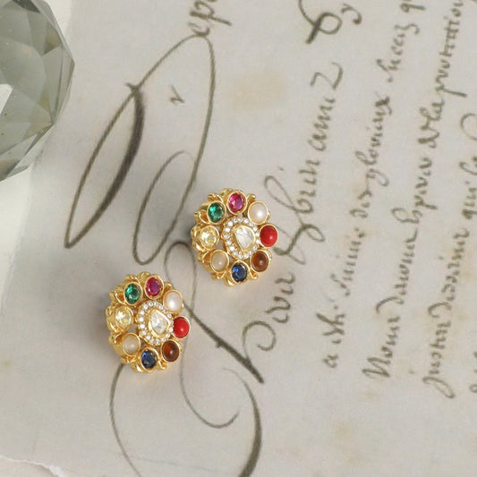 Anvaya Navaratna Silver Stud Earrings