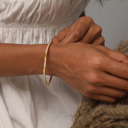 Regular price Rs. 5,929Regular priceUnit price / perSale price Rs. 5,929$50 and UnderBadge3:Ready To ShipBangles and BraceletsBracelet CuffsCasualCubic Zirconia (CZ)EOSS 15EverydayRakhi GiftingTyarraWedding GiftWhiteYellow Gold -