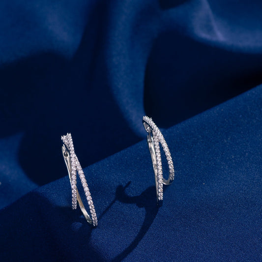 Crossover Sparkle CZ Silver Hoop Earrings