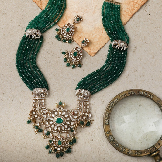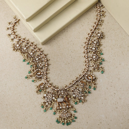 Elephant Floral Moissanite Silver Long Necklace Set