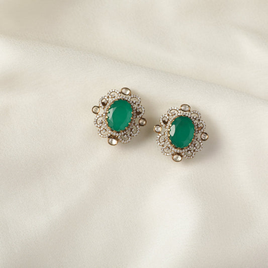 Emerald Opulence Silver Stud Earrings