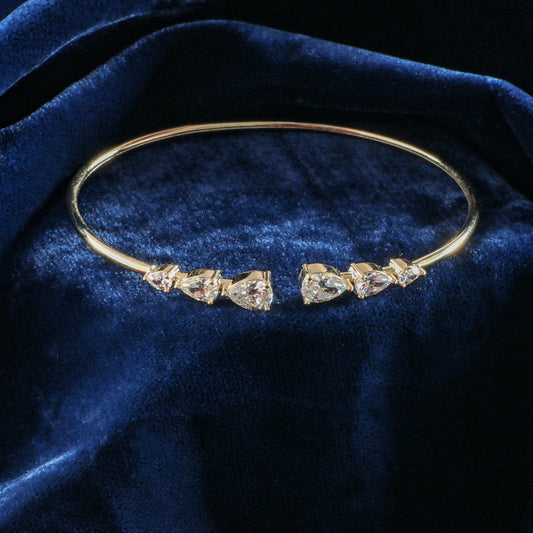 Elara CZ Teardrop Open Gold Plated Silver Bracelet