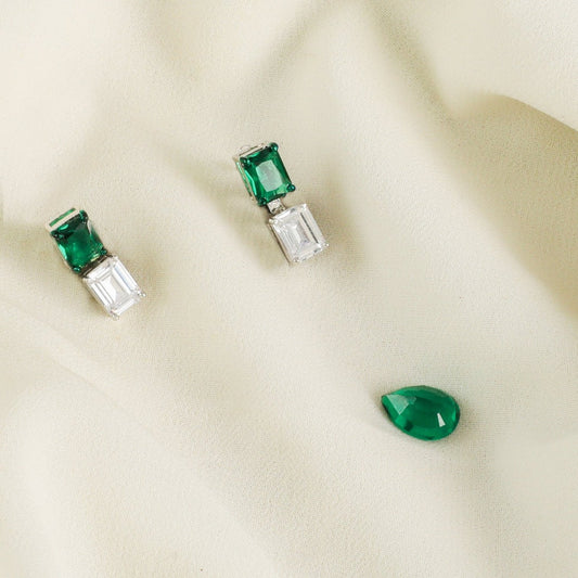 Emerald Shine Silver Stud Earrings