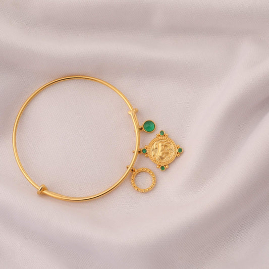 Emerald Taurus Zodiac Coin Gold Plated Silver Bracelet