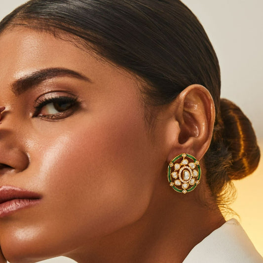 Regular price Rs. 12,579Regular priceUnit price / perSale price Rs. 12,579$100-$250CasualEarringsEOSS 30GoldMoissaniteRasikaStudsTOP 300 2025VaralaxmiWhite green -