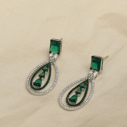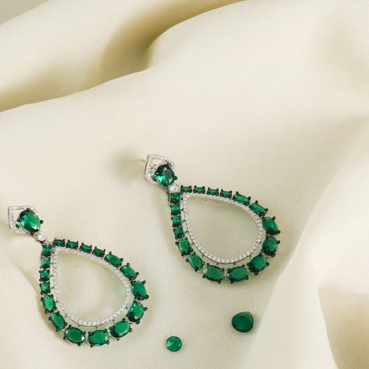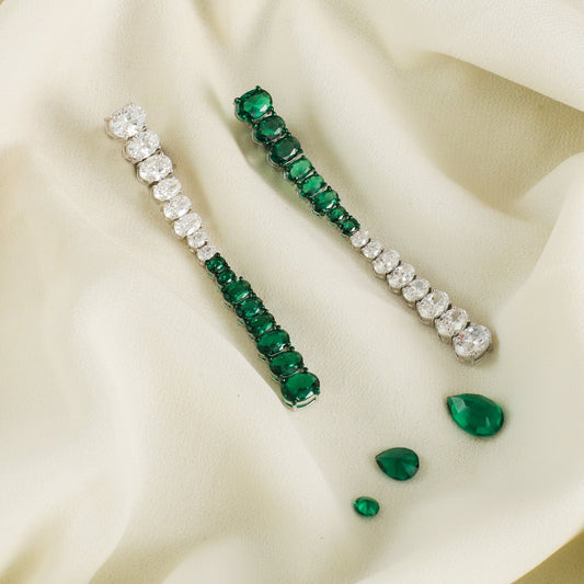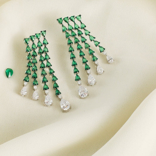 Regular price Rs. 6,229Regular priceUnit price / perSale price Rs. 6,229Badge1:NewDrop EarringsEarringsEOSS 15newRakhi GiftingWhite greenWhite Rhodium With Green Rhodium -