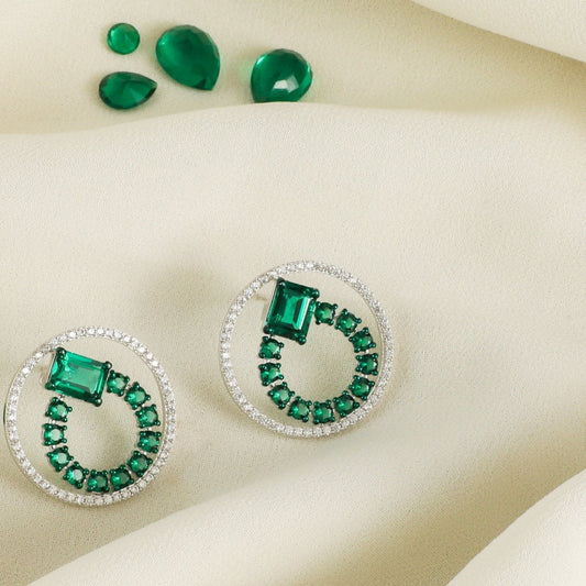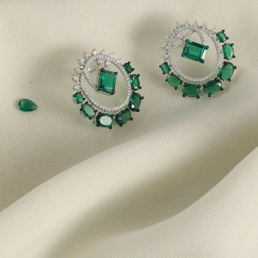 Regular price Rs. 3,909Regular priceUnit price / perSale price Rs. 3,909Badge1:NewBadge2:BestsellerEarringsEOSS 15newRakhi GiftingStudsWhite greenWhite Rhodium With Green Rhodium -