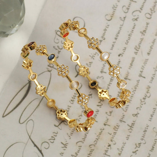 Regular price Rs. 15,169Regular priceUnit price / perSale price Rs. 15,169Badge2:BestsellerBangles and BraceletsEOSS 15Gold & White GoldNakshatraWedding GiftWhite green -