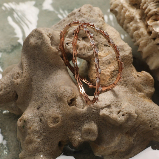 As the name suggests, these bangles and bracelets are minimal in width. Thus, you can pair them with different designs and sizes to create a fashionable stack. Alternatively, you can wear thin gold-plated silver bangles or bracelets for a minimal look. One of the best examples of stackable silver bangles is the Hiral CZ Silver Bangles. These 925 silver rose gold plated bangles are studded with high-quality CZ stones to add shine to the bangles. The bangles can be worn in a stack or singly and look alluring when paired with ethnic outfits.