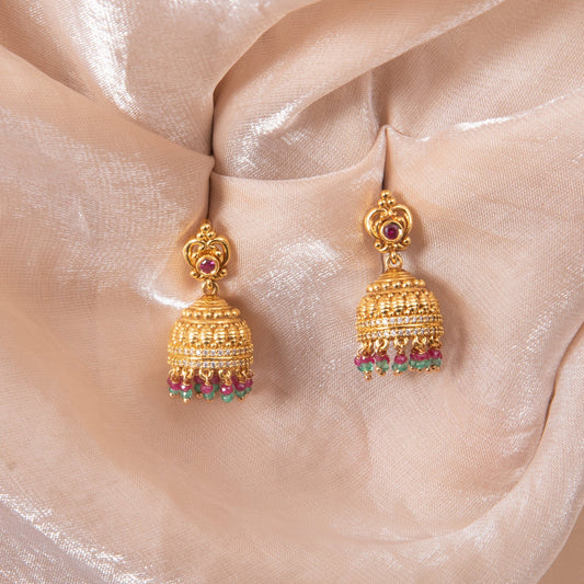 Regular price Rs. 11,079Regular priceUnit price / perSale price Rs. 11,07915Badge1:NewBadge3:Ready To ShipEarringsJhumkaK GOLDNakshatra DelicatenewTOP 300 2025Wedding GiftWhite Red Green -