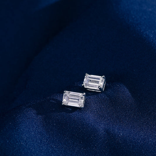 Classic Emerald cut CZ Solitaire Silver Stud Earrings, Mini
