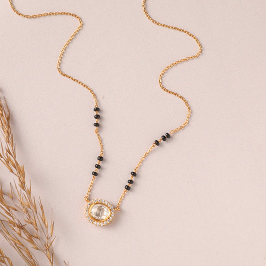 Regular price Rs. 3,199Regular priceUnit price / perSale price Rs. 3,199Badge2:BestsellerCasualCubic Zirconia (CZ)EOSS 10EverydayMangalsutraNecklacesTOP 300 2025WhiteWhite Gold -