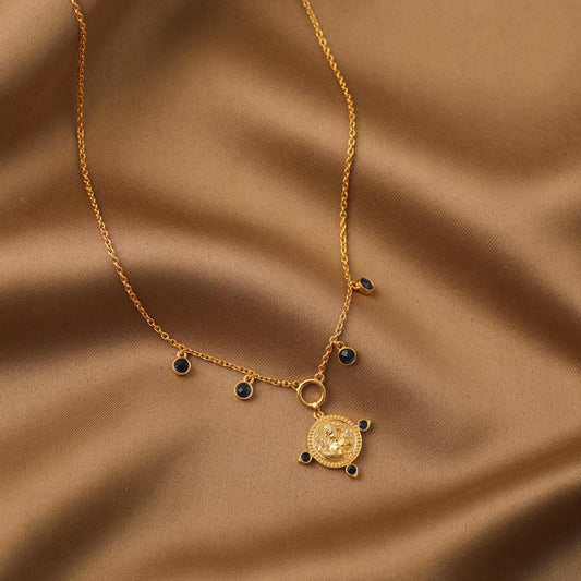 Regular price Rs. 5,569Regular priceUnit price / perSale price Rs. 5,569$50 and UnderBadge2:BestsellerBlue SapphireCasualContemporaryCubic Zirconia (CZ)EOSS 15Matte GoldNecklacesNipunaPendant NecklacesRakhi GiftingZodiac -