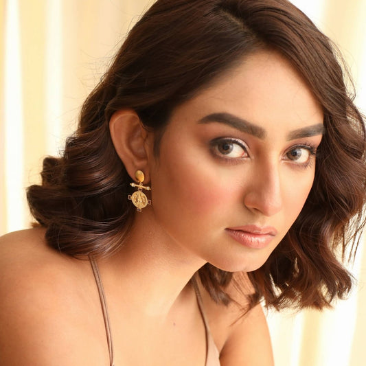 Regular price Rs. 7,259Regular priceUnit price / perSale price Rs. 7,259Antique Yellow GoldBadge2:BestsellerBadge3:Ready To ShipEarringsEOSS 15Rakhi GiftingRedTeejhVihara -