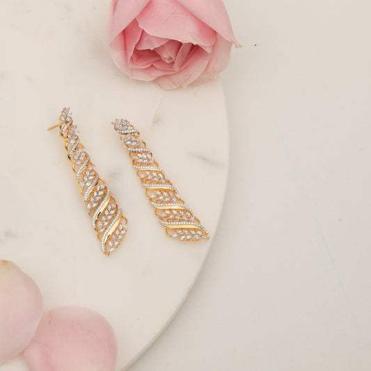 Regular price Rs. 5,899Regular priceUnit price / perSale price Rs. 5,899Badge2:BestsellerBadge3:Ready To ShipDrop EarringsEarringsEOSS 15Rakhi GiftingTeejhWhiteYellow Gold -