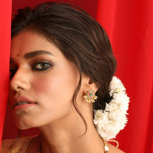 Regular price Rs. 5,939Regular priceUnit price / perSale price Rs. 5,939$50-$100Badge2:BestsellerBadge3:Ready To ShipCasualDrop EarringsEarringsEOSS 15FloralGoldIryaJadauKempuRakhi GiftingTeejhWhite Red Green -