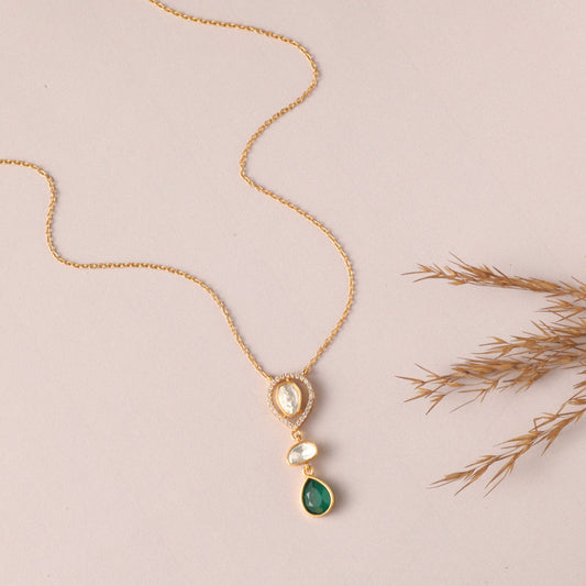 Regular price Rs. 3,829Regular priceUnit price / perSale price Rs. 3,829Badge2:BestsellerEOSS 10Pendant NecklacesRakhi GiftingTeejhTOP 300 2025White greenYellow Gold -