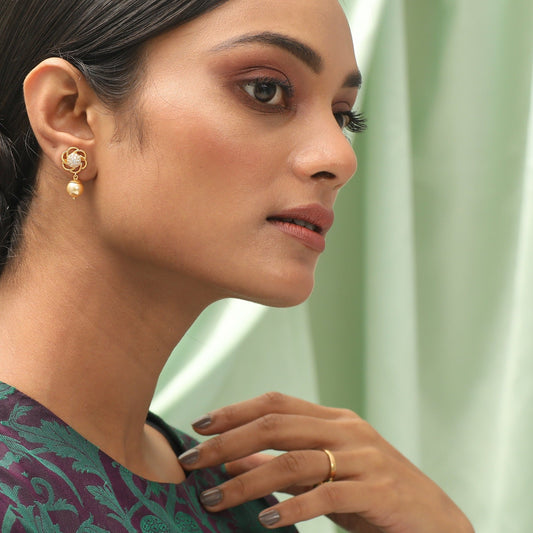 Regular price Rs. 6,219Regular priceUnit price / perSale price Rs. 6,219$50-$100CasualDrop EarringsEarringsEOSS 15EverydayFloralGoldMuktaRakhi Gifting -