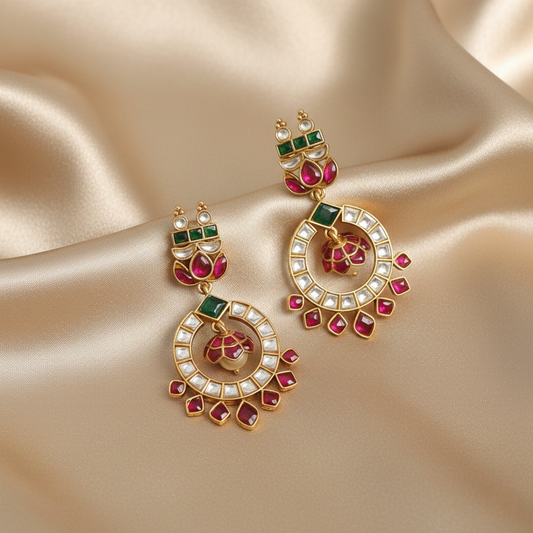 Regular price Rs. 11,279Regular priceUnit price / perSale price Rs. 11,279$50-$10030Badge3:Ready To ShipCasualDrop EarringsEarringsEOSS 25GoldIryaJadauPolki/KundanRakhi GiftingTeejhWedding GiftWhite -