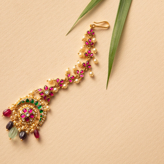 Kalpani Gold Plated Kempu Silver Maang Tikka