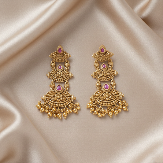 Regular price Rs. 34,619Regular priceUnit price / perSale price Rs. 34,61915Antique Yellow GoldEarringsEOSS 15JhumkaRedVaralaxmi -