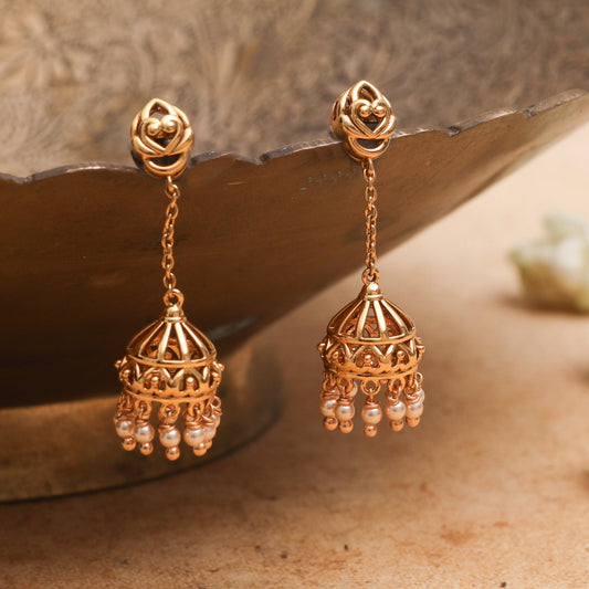 Regular price Rs. 3,999Regular priceUnit price / perSale price Rs. 3,999AntiqueAntique Yellow GoldBadge1:NewEarringsJhumkanew -