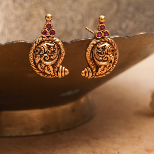Regular price Rs. 3,849Regular priceUnit price / perSale price Rs. 3,849AntiqueAntique Yellow GoldBadge1:NewEarringsnewRedStuds -