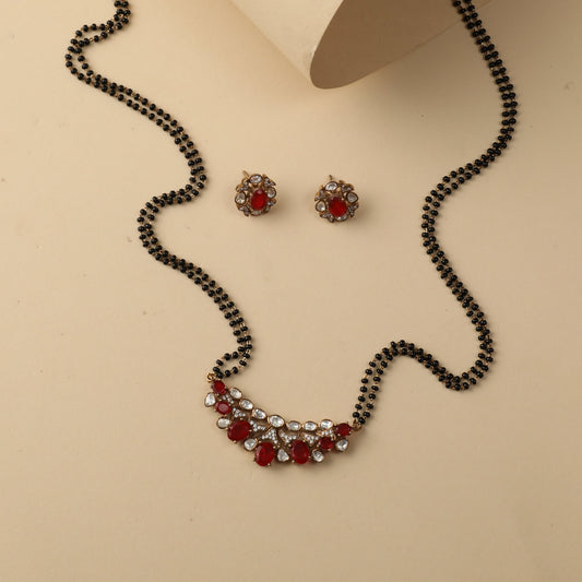 Ruby Moissanite Silver Mangalsutra Necklace Set