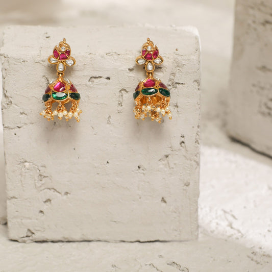 Regular price Rs. 10,403.10Regular priceUnit price / perRs. 11,559Sale price Rs. 10,403.10$50 and UnderBadge2:BestsellerBadge3:Ready To ShipEarringsEOSS 25IryaJadauJhumkaPolki/KundanTeejhWeddingYellow Gold[%] -