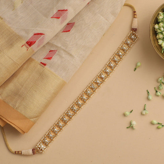 Kusum Gold Plated Jadau And Pearl Chain Choker