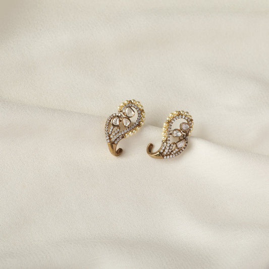 Paisley Gold Plated Pearl chain and Moissanite Jhumka