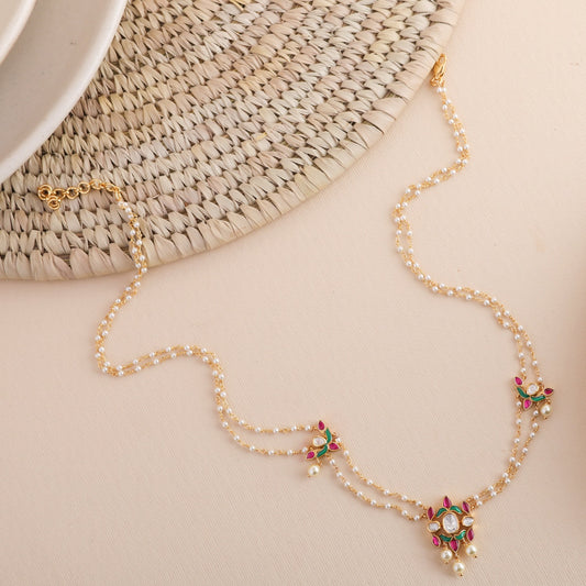 Vibha Gold Plated Gemstone and Pearl chain Hasli