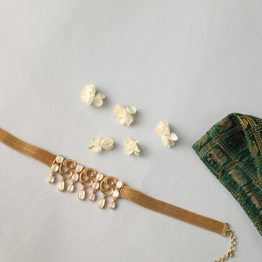 Malini Gold Plated Jadau and Pearl Chain Short Necklace