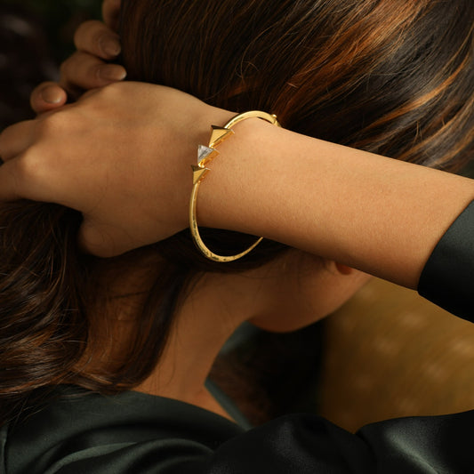 Regular price Rs. 6,879Regular priceUnit price / perSale price Rs. 6,879$50 and UnderBangles and BraceletsBracelet CuffsCocktailContemporaryEOSS 15GeometricIryaPolki/KundanRakhi GiftingTeejhWhiteYellow Gold -