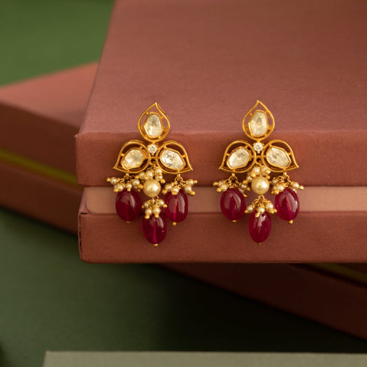 Regular price Rs. 11,969Regular priceUnit price / perSale price Rs. 11,969EOSS 15JhumkaNoor CollectionVaralaxmiWhite RedYellow Gold -